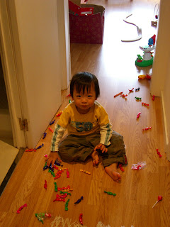 Back home, it's time to recreate the Festa. So dad threw all the candy that I had collected all over the floor, and we started again.